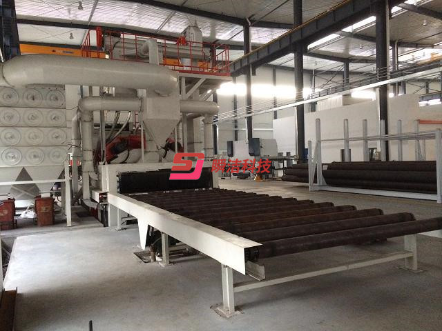 通過式拋丸清理機是用于清理各種型鋼、鋼板、鋼管等工件的專用設備。工件通過拋丸清理,不但可以去除工件表面的銹蝕,清理掉結構件上的焊渣,還可以消除工件的焊接應力,提高工件的抗疲勞強度,達到規定的粗糙値與硬度,并最終達到提高整個工件表面及內在質量的目的。